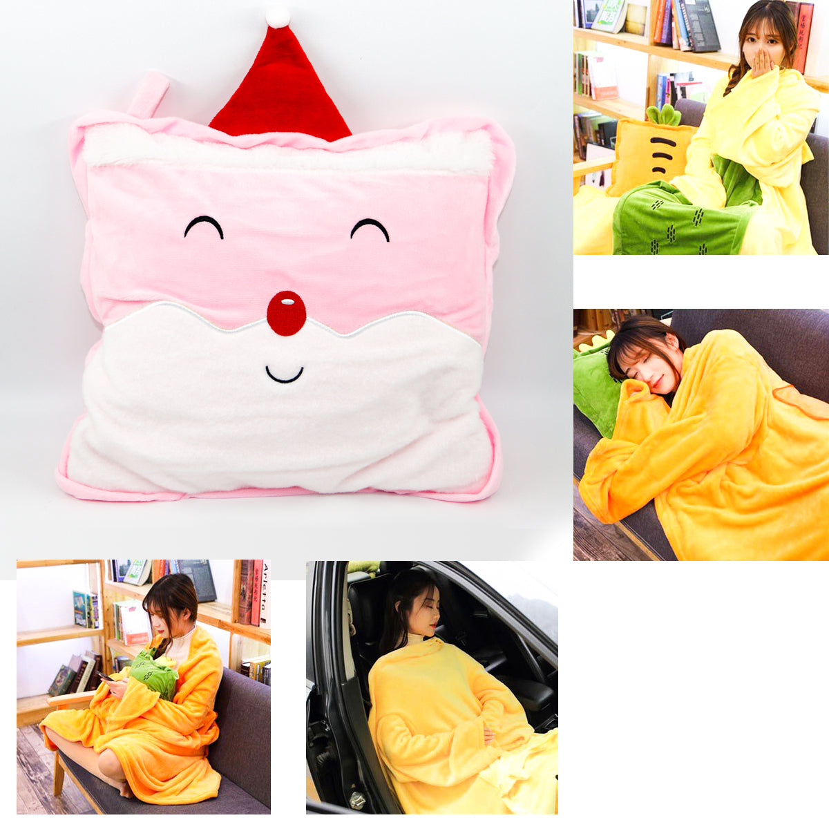 Katlayınca Yastık Açınca Kollu Giyilebilir Çocuk Battaniyesi 100x160 cm Pembe Noel Baba